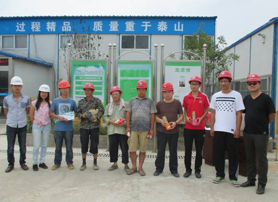 公司實(shí)行安全印花獎(jiǎng)賞活動(dòng)的目的是增強(qiáng)參建各方參與安全生產(chǎn)的積極性?;顒?dòng)的主要形式為:活動(dòng)啟動(dòng)后由施工單位給每名工人派發(fā)安全印花收集冊(cè),給建設(shè)單位(紅色章:蓋一次章4個(gè)印花)、BT單位(紅色章:蓋一次章4個(gè)印花)、監(jiān)理單位(紫色章:蓋一次章3個(gè)印花)、施工單位(綠色章:質(zhì)檢人員用,蓋一次章2個(gè)印花;藍(lán)色章:工區(qū)長(zhǎng)用,蓋一次章一個(gè)印花)分別派發(fā)印花章,如某工友在現(xiàn)場(chǎng)生產(chǎn)中,安全生產(chǎn)意識(shí)突出,積極參與安全培訓(xùn)、交底等活動(dòng),或者積極提出有關(guān)安全生產(chǎn)的提議并被采納,則上述各單位的同事可給該工友蓋印花章,工友收集印花后每一季度可兌獎(jiǎng)一次,得到的印花越多,獎(jiǎng)品越豐厚。前來(lái)項(xiàng)目部?jī)稉Q獎(jiǎng)品的五名工友為這一季度安全生產(chǎn)表現(xiàn)最好的幾名工友。