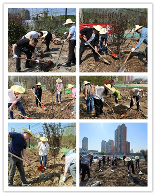 在項(xiàng)目綠化施工現(xiàn)場,經(jīng)過專業(yè)人員的簡單培訓(xùn),40余名干部職工擼起袖子,熱情高漲地參與現(xiàn)場苗木種植。大家三四個(gè)人一組,分工協(xié)作,有的挖坑、有的扶苗、有的培土,每個(gè)環(huán)節(jié)銜接緊湊、繁忙而有序。經(jīng)過一上午的辛苦勞作,一排排新栽的紅葉李、石楠樹,為原本空曠的土地增添了勃勃生機(jī)。