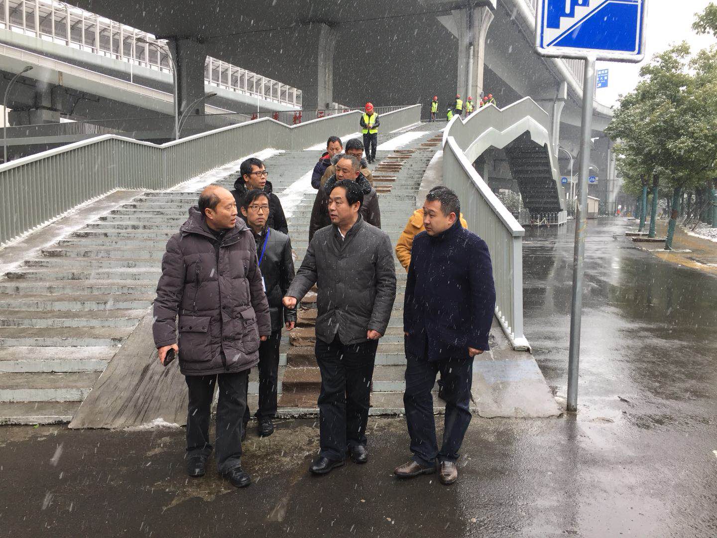 1月26日下午,城投集團(tuán)公司董事長金國發(fā)冒著大雪來到雄楚大街項目現(xiàn)場,實地檢查雄楚大街沿線天橋在低溫雨雪天氣條件下的安全情況。金董事長詳細(xì)詢問了雨雪冰凍天氣天橋的防凍防滑等安全措施,并要求參建單位要切實加強(qiáng)人行天橋的安全實時檢查,措施保障到位,確保行人通行安全。
