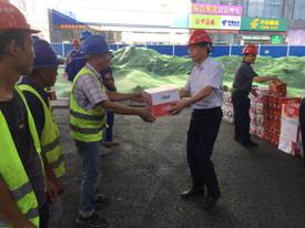 慰問(wèn)中,曾主任仔細(xì)詢問(wèn)了大家的工作情況和身體狀況,并對(duì)勞動(dòng)者們?cè)诟邷叵氯匀粓?jiān)持工作表達(dá)了敬意和誠(chéng)摯的感謝。曾主任要求項(xiàng)目負(fù)責(zé)人一定要落實(shí)好防暑降溫措施,根據(jù)工作實(shí)際合理安排作業(yè)內(nèi)容,避免在最熱時(shí)段進(jìn)行作業(yè),防止高溫中暑,要顧及工作,也要確保一線職工身心健康、安全度暑。