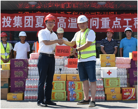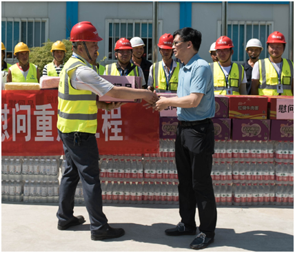盛總和李總向在酷暑中堅持工作的員工們表示親切的慰問和真誠的感謝,并叮囑大家要根據(jù)夏季特點強化安全意識,確保在高溫條件下安全生產(chǎn)和文明施工的同時更要合理安排好工作、飲食和休息時間。