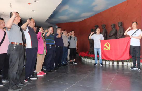 參觀新四軍第五師歷史陳列館后,集團公司總經(jīng)理、黨委副書記艾詩明帶領全體黨員在革命群雕面前重溫入黨誓詞。隨后,大家繼續(xù)在戶外參觀了李先念、陳少敏舊居、參謀部、槍械所、醫(yī)務室、印刷廠、后勤部等紅色遺址。