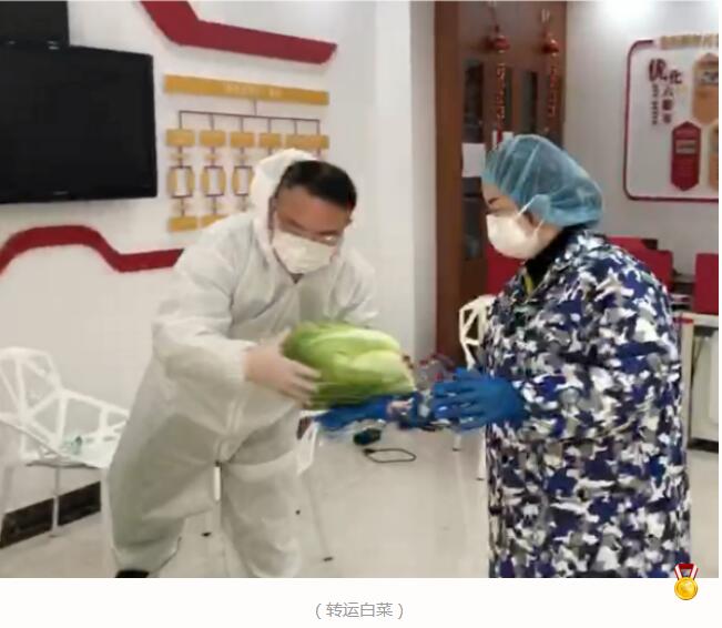 今天的任務(wù)一早就來了,3名同志到社區(qū)不一會兒,兩噸白菜就運到了居委會門口。很快地,3名同志和社區(qū)工作人員一道,靠雙手轉(zhuǎn)運完成了2噸白菜。