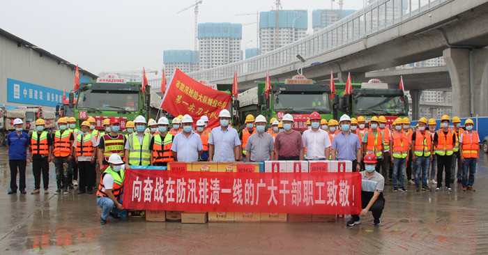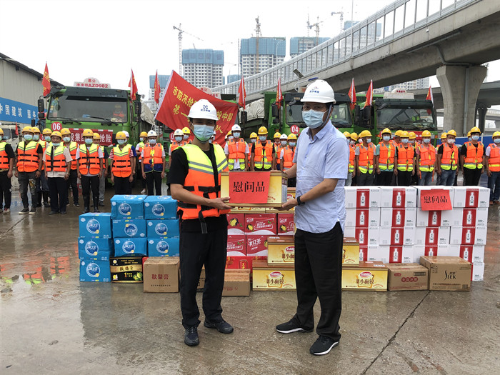 7月21日上午,市城投集團(tuán)公司總經(jīng)理李兵來到楊泗港青菱段綜合管廊項(xiàng)目部,慰問堅(jiān)守在防汛一線的市級防汛搶險(xiǎn)應(yīng)急救援大隊(duì)城投中隊(duì)第一尖刀分隊(duì)全體隊(duì)員,為他們送去食物、飲料、藥品等慰問物資。
