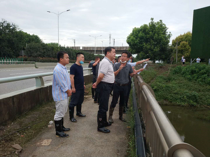 7月12日上午,市政府副秘書長陳躍慶檢查三環(huán)線小河橋防汛應(yīng)急工作情況。