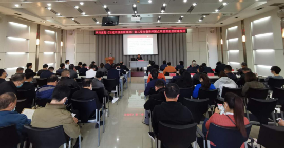 10月23日,集團(tuán)公司黨委理論學(xué)習(xí)中心組(擴(kuò)大)舉辦《習(xí)近平談治國(guó)理政》第三卷專(zhuān)題宣講報(bào)告會(huì),邀請(qǐng)市委講師團(tuán)成員、江漢大學(xué)馬克思主義學(xué)院院長(zhǎng)趙興教授到場(chǎng)宣講。集團(tuán)公司領(lǐng)導(dǎo)班子成員、本部中層干部、全體黨員及所屬單位領(lǐng)導(dǎo)班子成員共70余人參加活動(dòng)。這次活動(dòng)也是集團(tuán)公司與武昌區(qū)白沙洲街八鋪街社區(qū)黨建共建活動(dòng)的一項(xiàng)重要內(nèi)容,八鋪街社區(qū)黨委副書(shū)記沈嬌也來(lái)到現(xiàn)場(chǎng),參加宣講活動(dòng)。