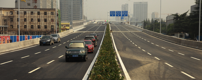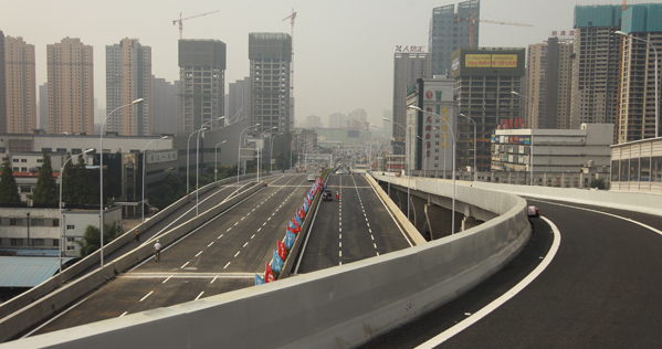 龍陽大道(琴臺大道-墨水湖南路)改造工程北起琴臺大道,南止墨水湖南路,全長3424米,紅線寬度60米-100米,是武漢市主城區(qū)“三環(huán)十三射”快速路系統(tǒng)的重要組成部分,是漢陽片區(qū)串聯(lián)二環(huán)、三環(huán)的南北向重要放射線。該工程采取主線高架+地面輔道、主線地面道路的建設(shè)形式,項目總投資約21億元。工程于2013年5月開工建設(shè),今年4月30日,龍陽大道二環(huán)線內(nèi)工程已順利通車。