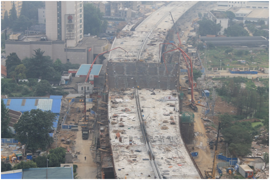 為盡量減少施工對周邊百姓出行的影響,根據(jù)道路交通車流量情況,采取不斷交通的施工模式,增設(shè)施工現(xiàn)場警示標(biāo)志,落實(shí)施工人員安全防護(hù)措施,嚴(yán)格遵守文明施工標(biāo)準(zhǔn),確保周邊行人、車輛正常通行。在此基礎(chǔ)上,根據(jù)歷年氣候變化和降雨情況,合理制定切實(shí)可行的雨季施工計劃,疏通排水設(shè)施,根據(jù)天氣及時調(diào)整施工部署,、使施工規(guī)范有序進(jìn)行,確保雄楚大街高架(尤李立交-楚平路段)2015年8月30日按時通車。