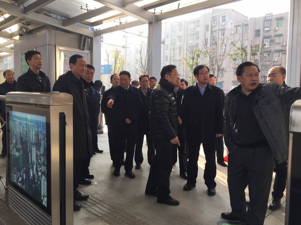 市領(lǐng)導(dǎo)一行乘坐試運(yùn)行公交車沿雄楚大街BRT檢查各個(gè)公交站臺(tái)的建設(shè)和調(diào)試情況,并對(duì)BRT開(kāi)通后的交通組織方案和人行過(guò)街措施提出了具體要求。